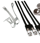 We've got the real-deal track pedals from MKS, and steel toe cages and leather straps from MKS and Soma.